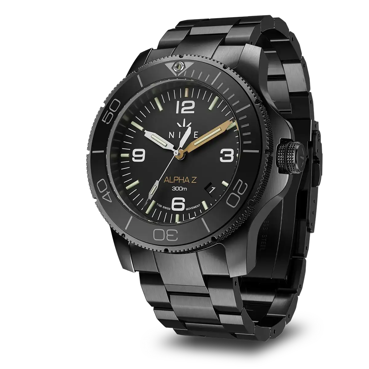 ALPHA Z Special Ops tactical watch with date function and unidirectional bezel. Screw down crown & water resistant to 300m.